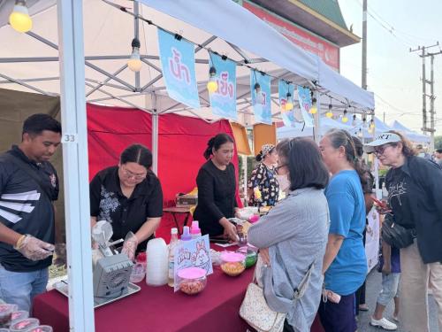 (Sally cheer)โดยในการจัดกิจกรรมครั้งนี้มีร้านค้า OTOP และร้านอาหารชุมชน เข้าร่วมกิจกรรมกว่า 50 ร้านค้า