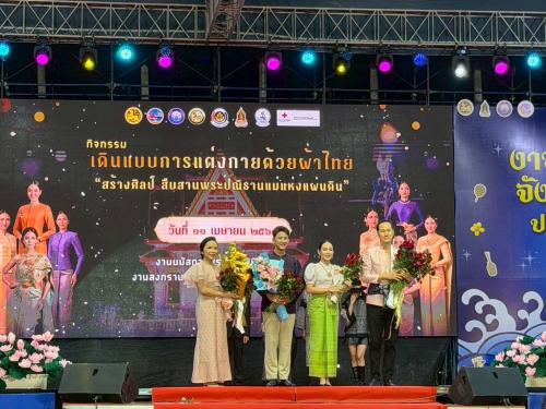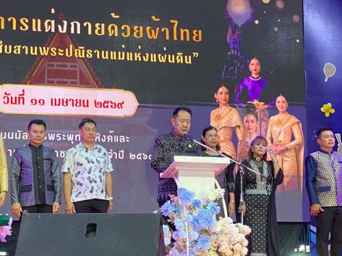 นางสุกัญญา ไชยพันธุ์ พัฒนาการอำเภอพนัสนิคม พร้อมด้วยเจ้าหน้าที่พัฒนาชุมชนอำเภอพนัสนิคม ร่วมกิจกรรมเดินแบบการแต่งกายผ้าไทย "สร้างศิลป์สืบสานพระปณิธาน แม่แห่งแผ่นดิน" ในงานนมัสการพระพุทธสิหิงค์ฯ และงานสงกรานต์จังหวัดชลบุรี ประจำปี 2569